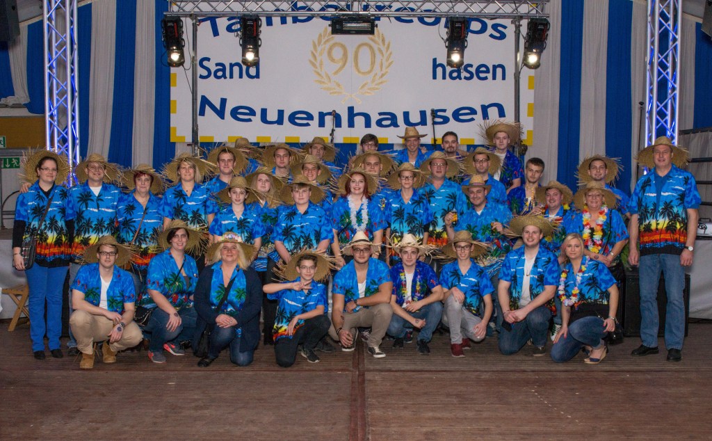 2015 stand dann das 90-jährige Bestehen an. Gefeiert wurde dieses Jubiläum an einem Wochenende im November. Am Freitagabend startete der Festakt mit einer „Karnevals-Stehung“ auf der fünf kölsche Bands, unter anderem „cat ballou“, im Festzelt auf dem Neuenhausener Kirmesplatz auftraten. Gut 1.000 Besucher konnten einen grandiosen Auftakt erleben. Am Samstag gingen die Feierlichkeiten intern mit einem Totengedanken auf dem Friedhof und der Jubiläumsmesse weiter, bevor am Sonntagmorgen zu einem musikalischen Frühschoppen geladen wurde. In einen gutbesuchten Zelt stellten befreundete Tambourcorps und Musikkapellen ihr Können unter Beweis. Großes Highlight war das Aufspiel der ehemaligen Spielkameraden, die drei Monate auf dieses Konzert hingearbeitet hatten.